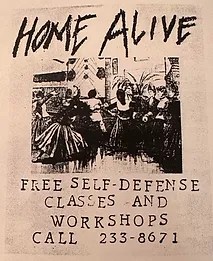 Home Alive was a feminist self-defense collective I co-founded in Seattle, Washington with eight other women. It was a response to the rape and murder of our friend, Mia Zapata, who was a beloved and inspired musician and artist. Home Alive provided affordable self-defense classes, through funds we raised from music and art shows. Famous and infamous artists, and artists unconcerned with being well-known, supported the organization through its 17-year run. Home Alive was part of the 1990s activism that informed intersectional feminisms, healing justices, and abolitionist feminisms through non-carceral responses to gendered violence.